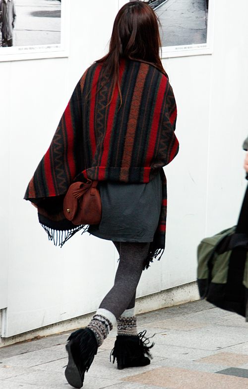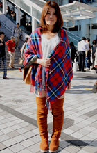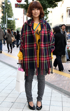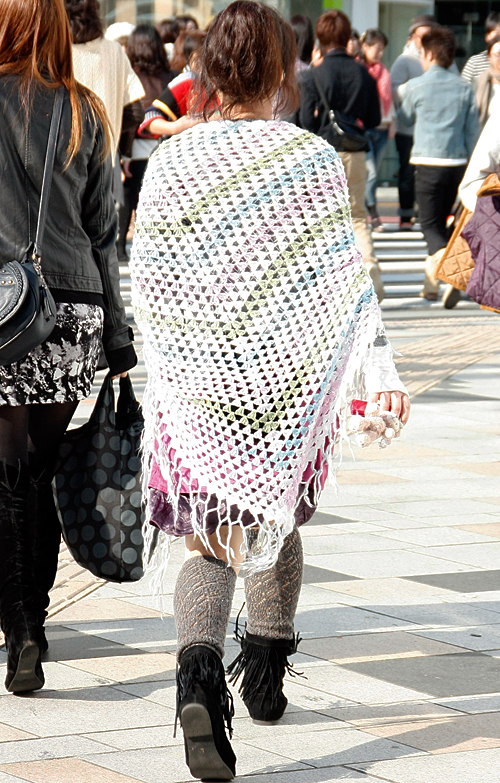 巻きもの類を、肩を覆うように羽織って着用するスタイルすべて。素材や色、柄は問わない。