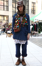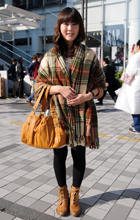 首の周辺に何らかのものを巻いているスタイル。素材や色、柄は問わない。