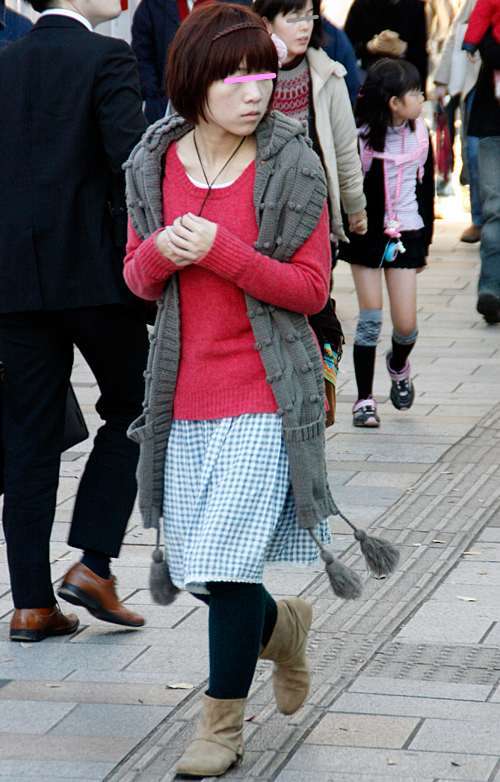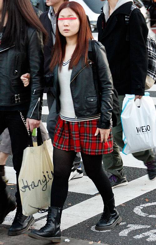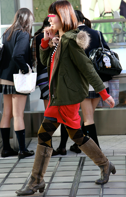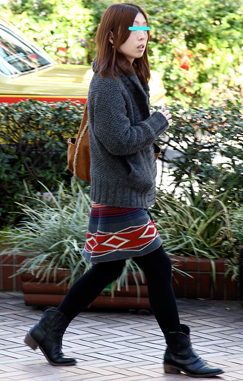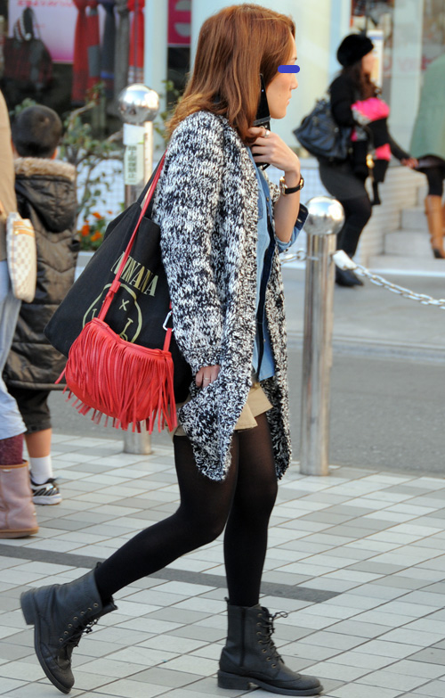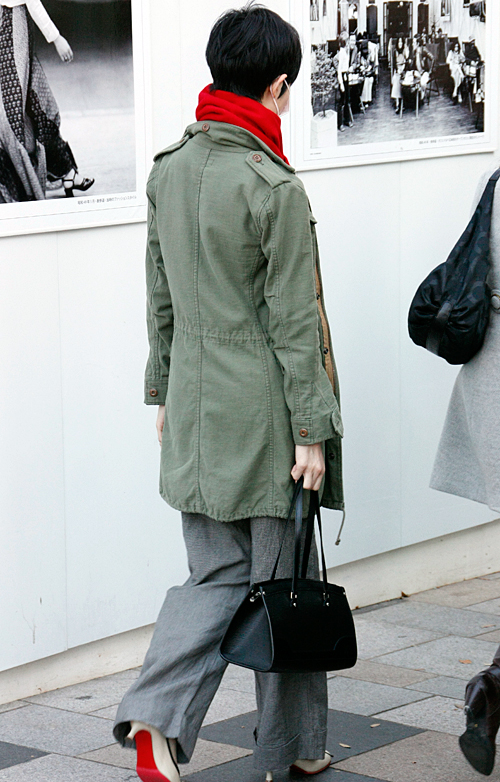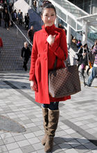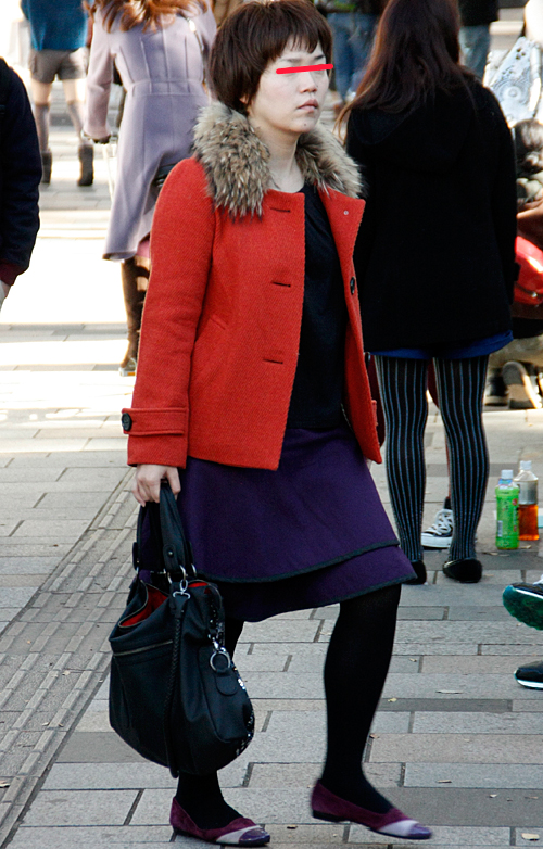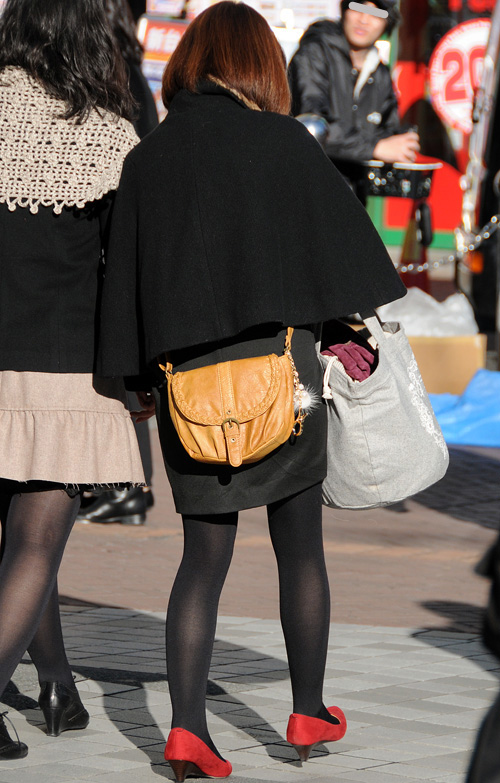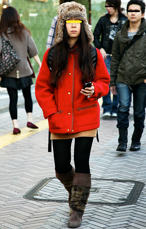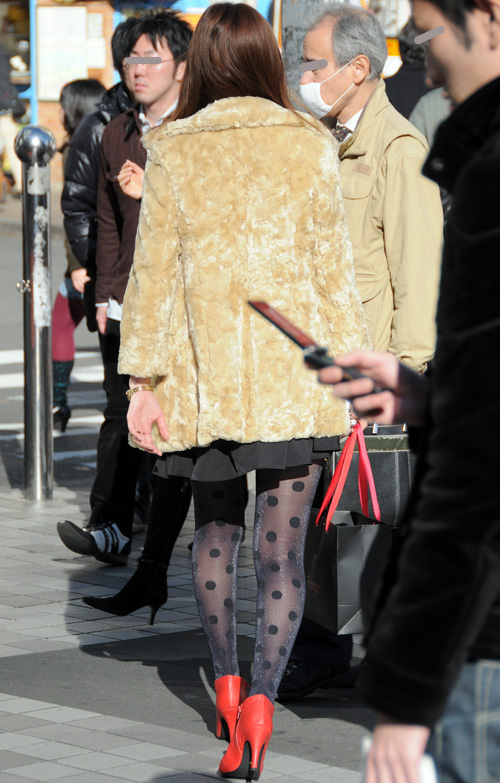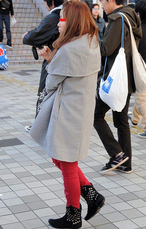 案外多かった赤いアウターの女子。×黒やヒョウ柄で強いイメージ...