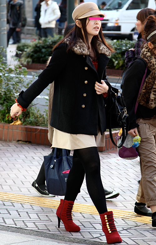 ティーンズ〜20代前半には赤のベレー帽が多かった。赤パンプス...