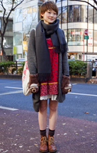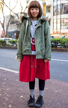 トレンドのチェックでも赤ベースが人気。スクールガール風のコー...