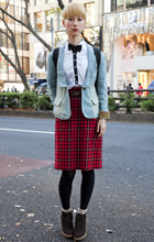 案外多かったアウターなしのスタイル。スクールカーディガンは来...