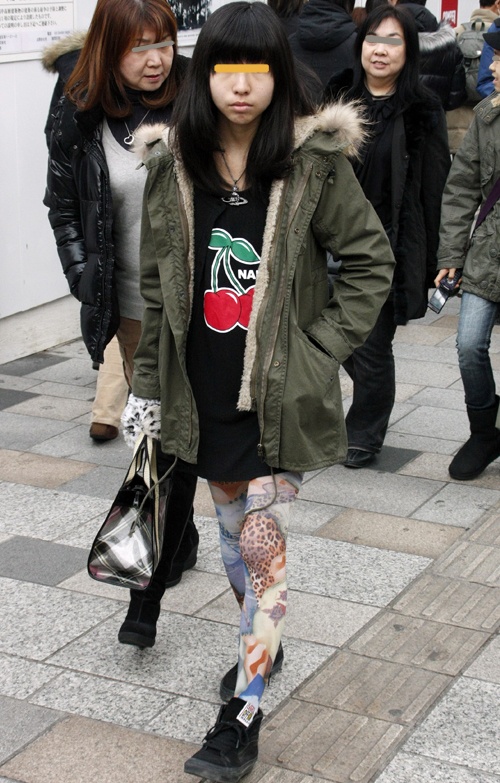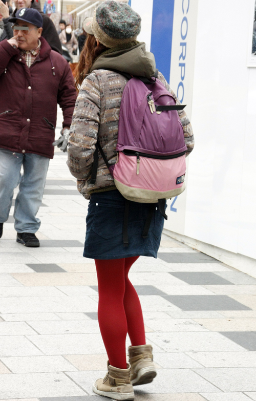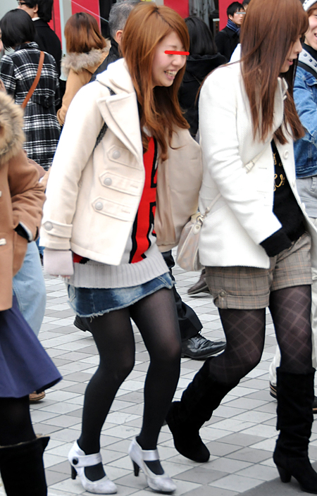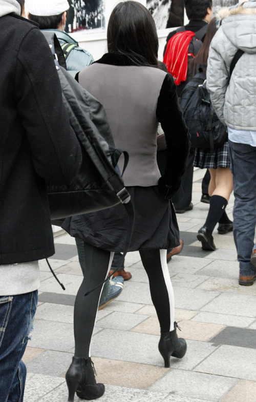 ボトムスが膝上のものを着用している女性すべて。レギンスを重ねていても可。ボトムスのデザインはスカートでもパンツでも可。色やデザイン、素材は問わない。