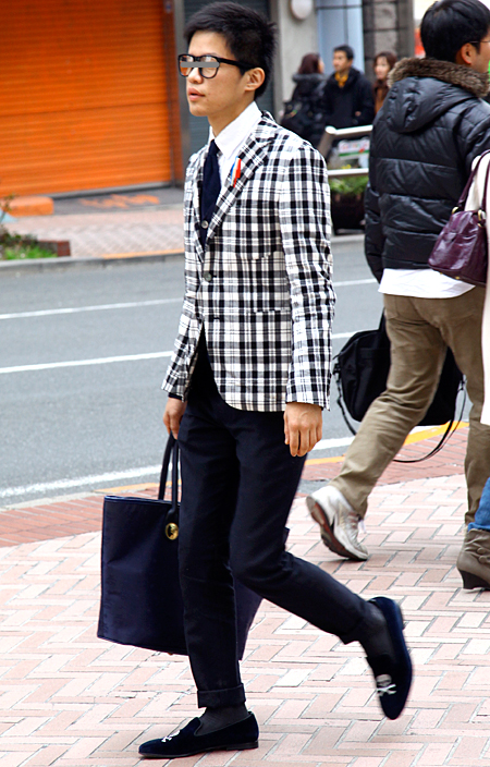 「おじさん風」のツイード素材は若い男子にも浸透。デニムの裾を...