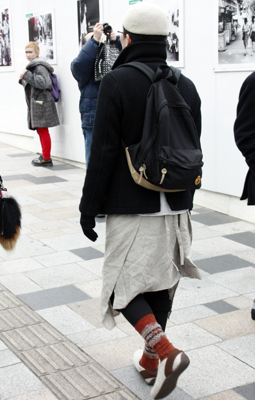 原宿ではスカートをはく男子が浮上。麻布を巻き付けたようなスカ...