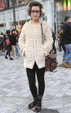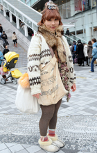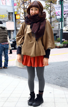 厚手のニットタイツにニットソックスをレイヤード。“柄あし”も...