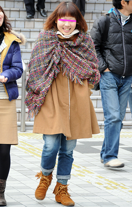 08年以降人気のショール羽織り。Aラインのコートの上にショー...