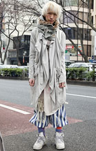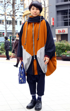 バルーンスカート+ポンチョで、全身でコクーンシルエットを形成...