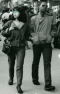 男性と女性2人で歩いている組。年齢、接触度は問わない。