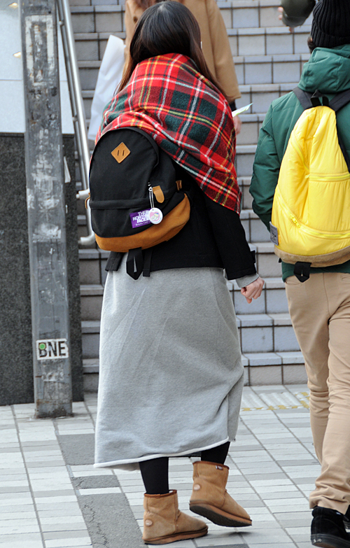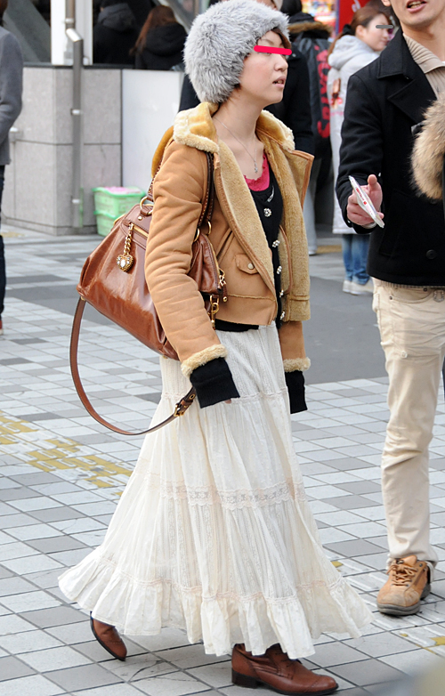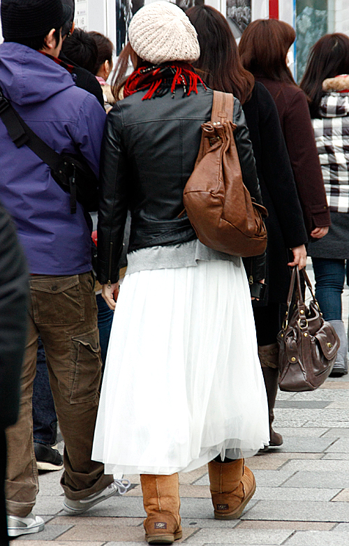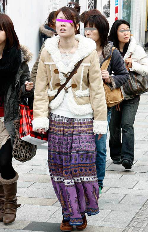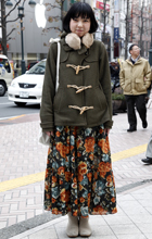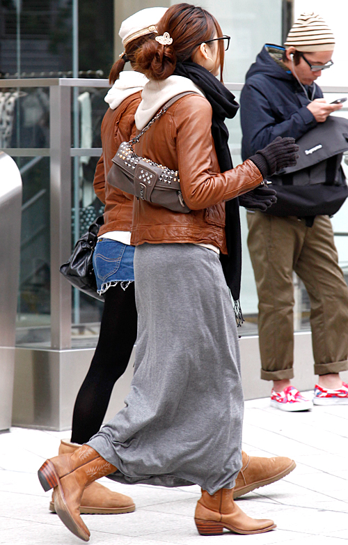 超ショート丈ムートンにはロングスカートがバランスがいい。+ゴ...