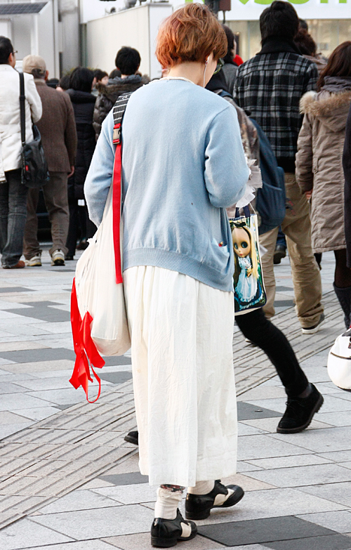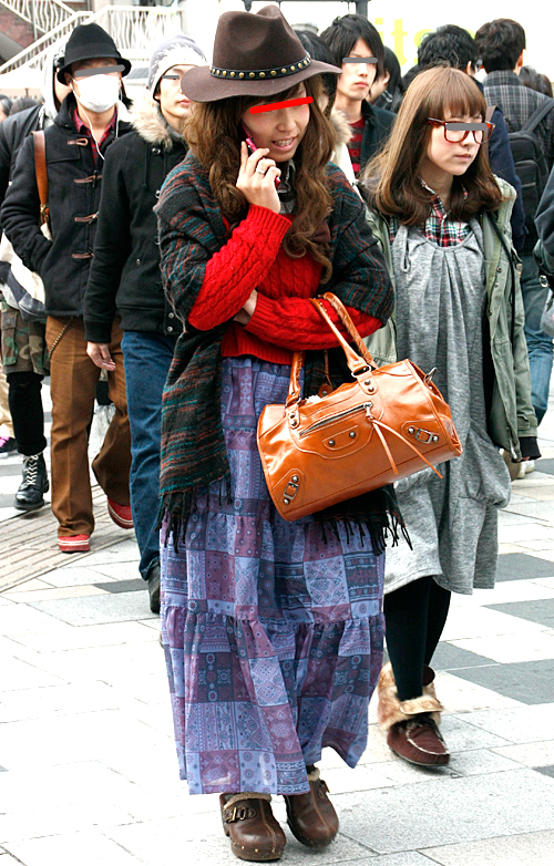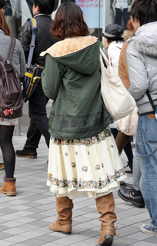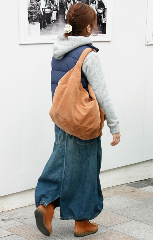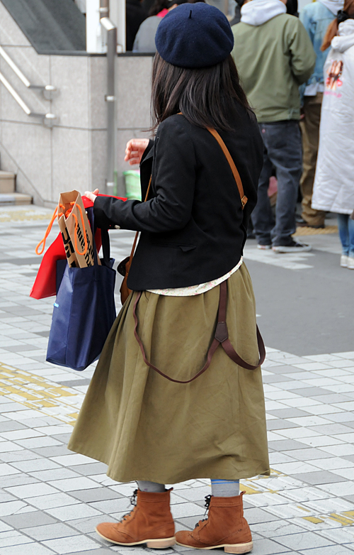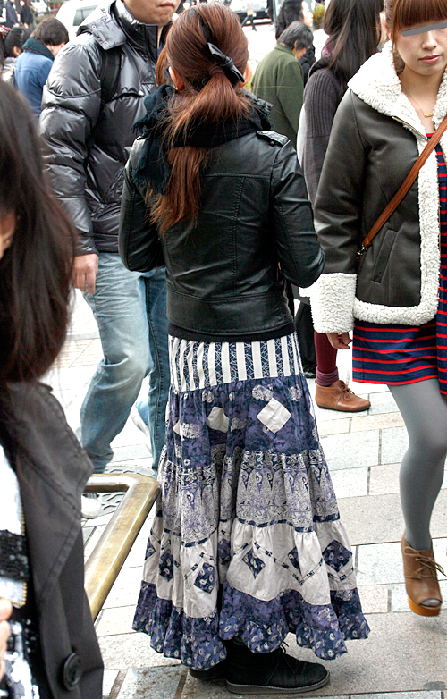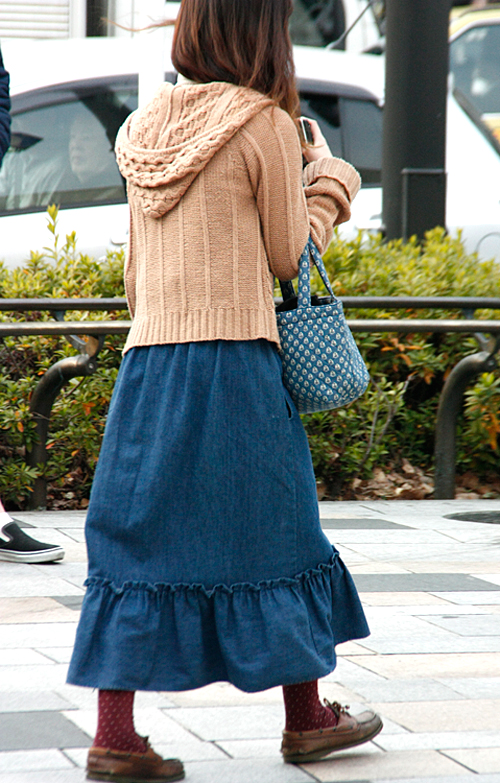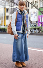 原宿で多かったのが、ノスタルジックなデニム素材のロングスカー...