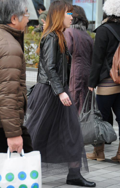 チュチュのような透け感のあるスカートも今冬はロング丈に。+黒...