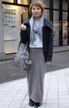 オンザ眉毛の前髪でカルチャーっぽい印象の彼女。ロングスカート...