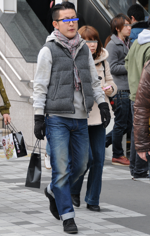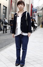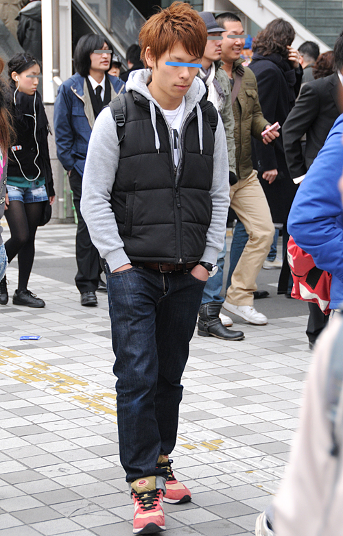 アメカジ風のファッションが増加。パーカー+ダウンベスト+リジ...