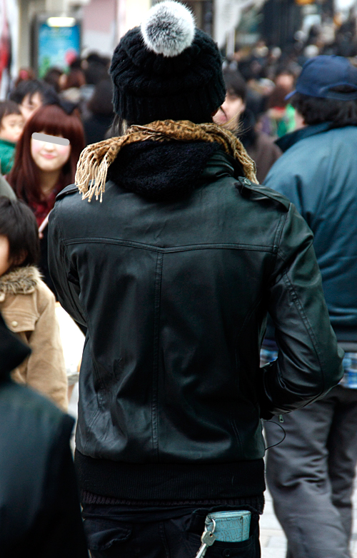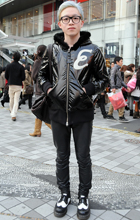 フード出しスタイルの女子に多かったひとつのスタイルが、レザー...