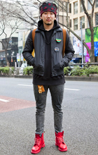 メンズで最も多かったのがレザーライダースとパーカーの組み合わ...