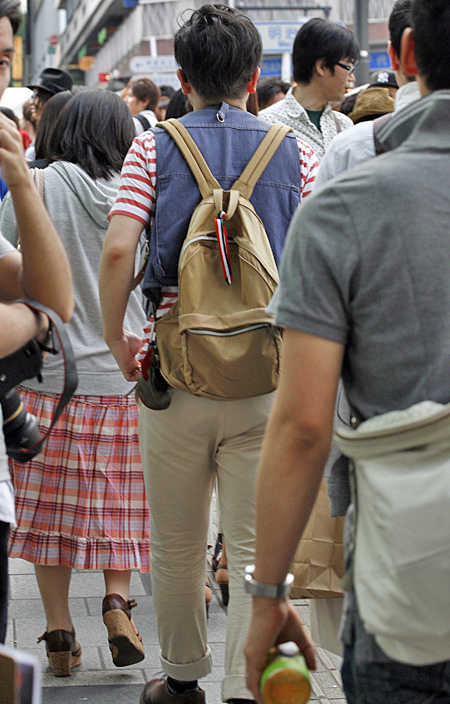 男女ともに増えていた金髪。スカートやヒール靴を着用するユニセ...