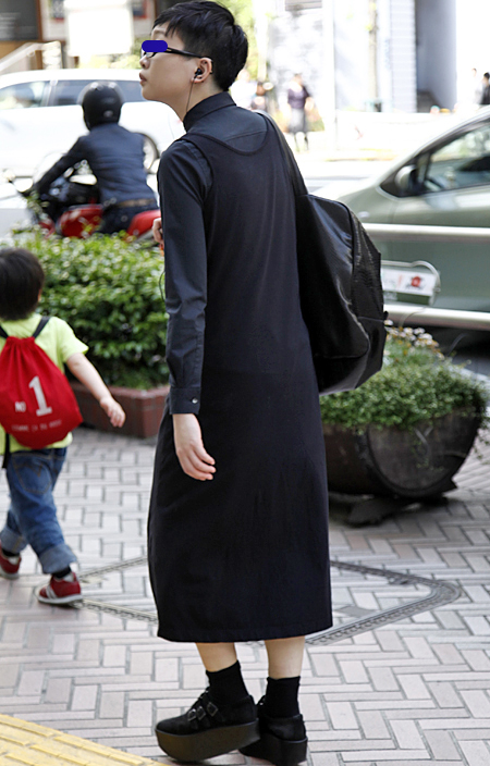 ワンピースを着用する「スカート男子」。まるでアジアの男の子の...