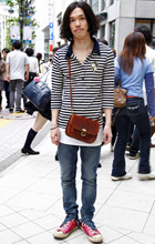 ボストンバッグもあえてストラップを長くし、だらりと掛けるスタ...