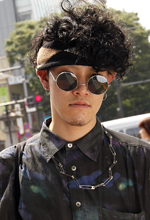 最近、ヘッドバンドとかバンダナを付けるのが好きです。頭がさみしい感じなのでプラスしています。最近は黒で固めて柄で崩すのが好きなので、ちょっと変なものをとりいれています。地元のブレスというサロンでパーマをしてもらって、カラーは昨日自分で黒く染めました。前は明るい茶だったのですが、バイトの面接に8回落ちたので黒くしました。元々刈り上げだったのですが、最近、RADD LOUNGE (ラドラウンジ)でお店の人にバリカンでもっと刈り上げてもらいました。