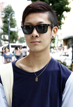 去年の夏は、ひざ丈のボードショーツをはいていましたが、今年からは、ショートパンツをロールアップしてはきたくて、短めの丈ではいています。雑誌『MEN'S FUDGE』のボトムス特集で、海外スナップでは、ロンドンでショートパンツをロールアップしているスタイルが多かったので、外国人風にしたくて参考にしました。