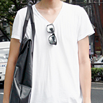 襟ぐりが大きく開いたパンチのあるモノトーンファッションはNY...