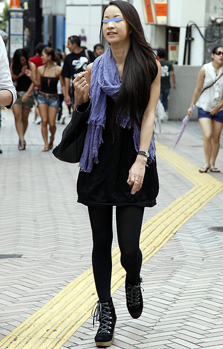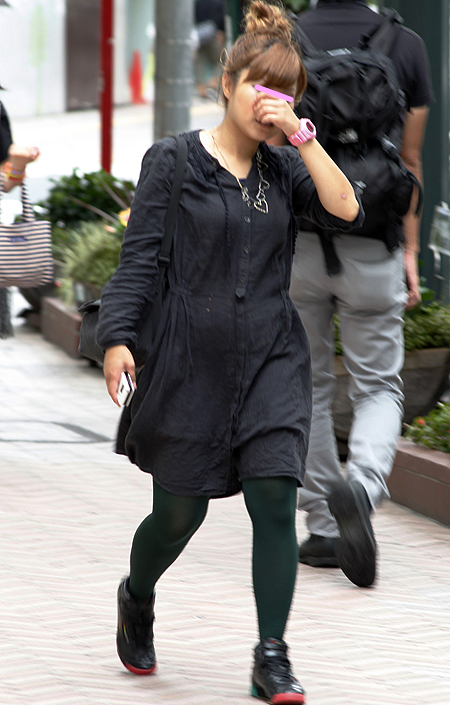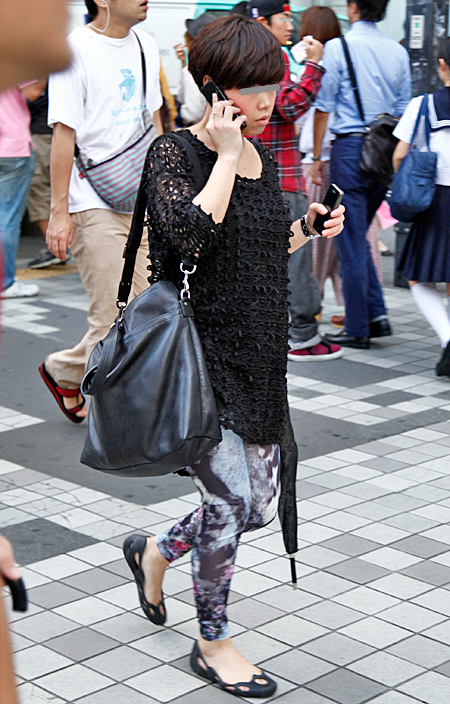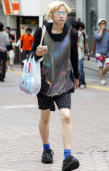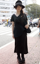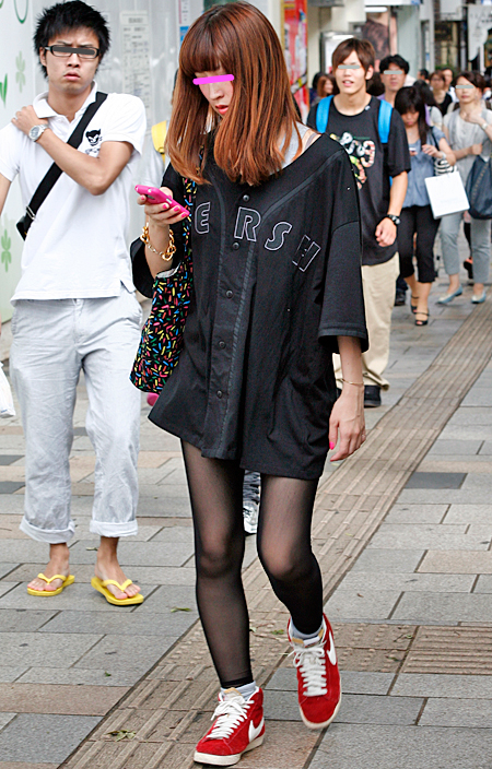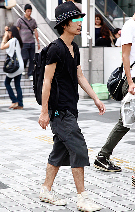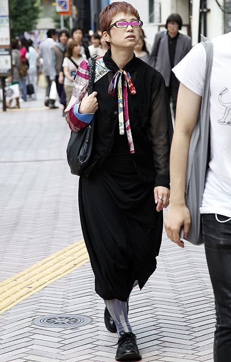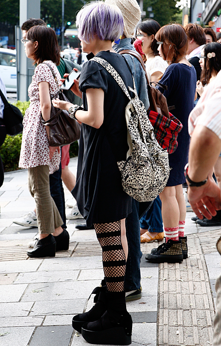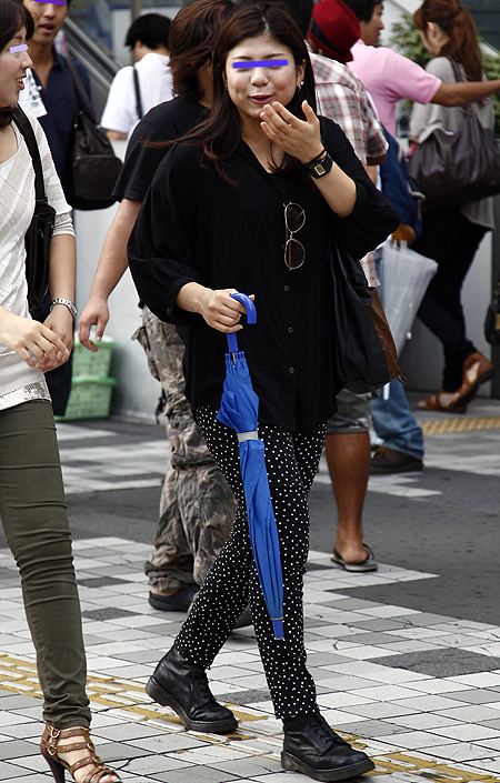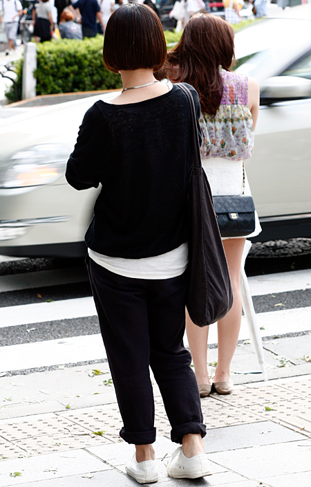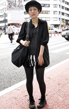 原宿では靴やインナーで白を差した黒コーディネートが多かった。...
