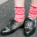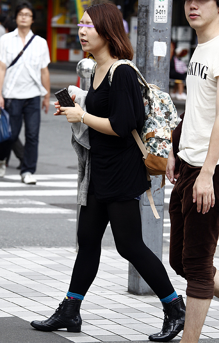ソックスの色・柄をポイントにする着こなしが浸透。全身黒コーデ...