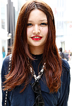 中学2年のころからお化粧をしだして、その頃も赤のグロスは持っていて使っていました。リップは中3くらいから使っていて、特に赤リップが好きで、カッコいいのでよくつけていました。自分のファッションとして、出かける前に赤リップを塗る習慣がついちゃいました。唇で主張している時は、引き算でシャドーを外して、ラインだけのときもあります。