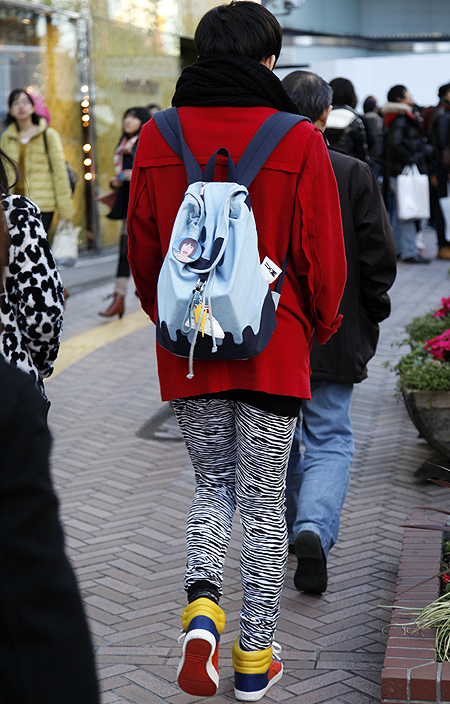 ゼブラ柄のレギパンにカラフルなスニーカーを合わせた、アニメの...