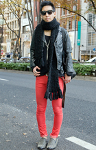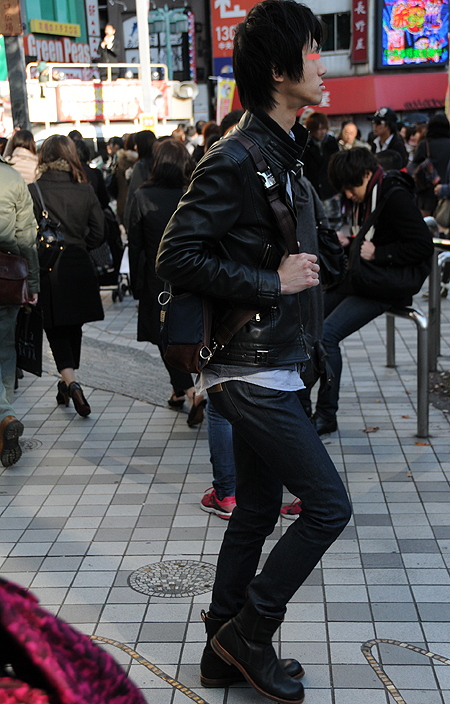新宿ではスキニーパンツにライダースやエンジニアブーツを合わせ...