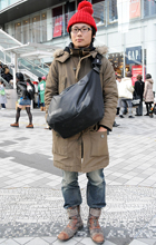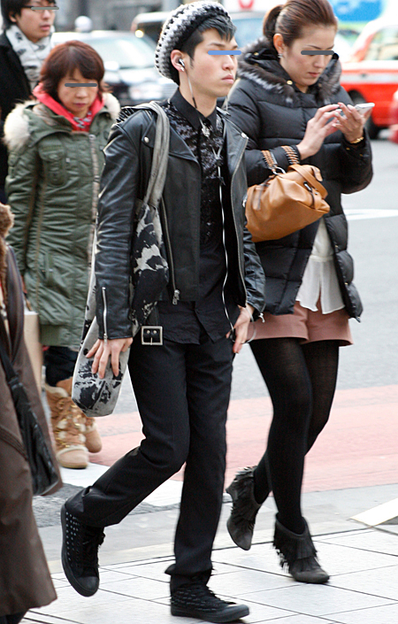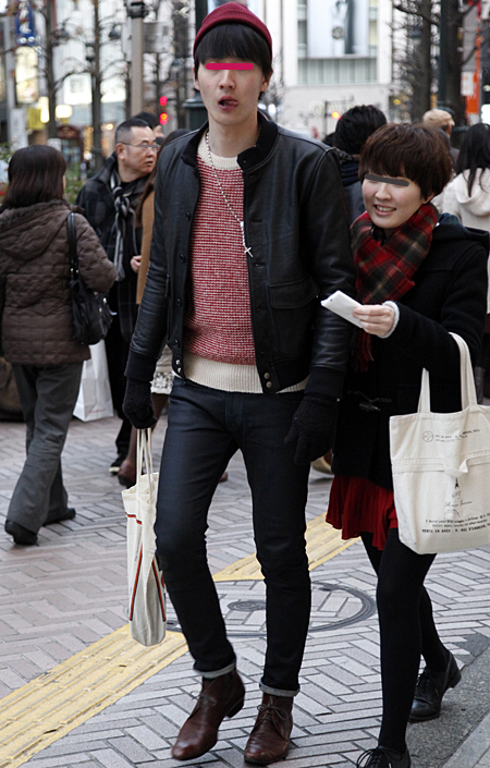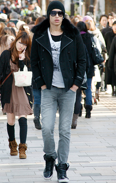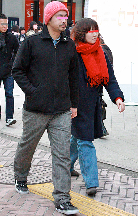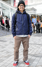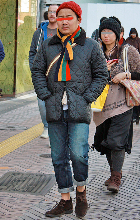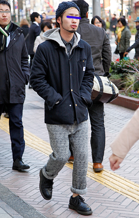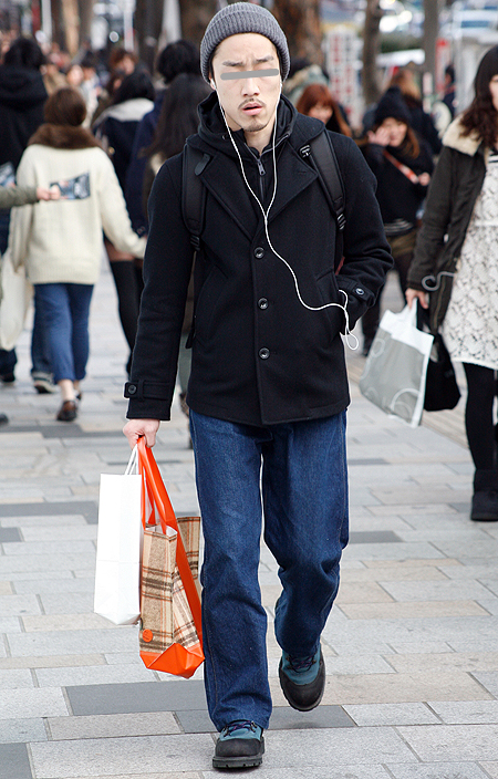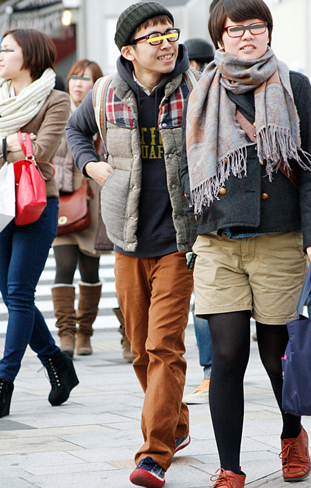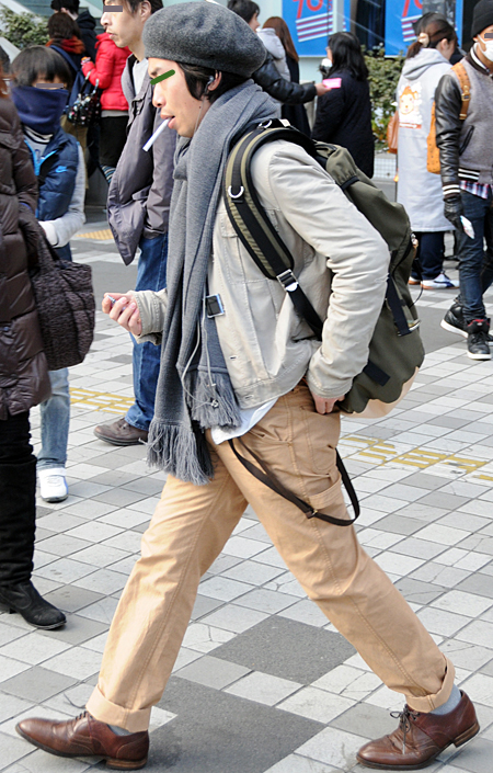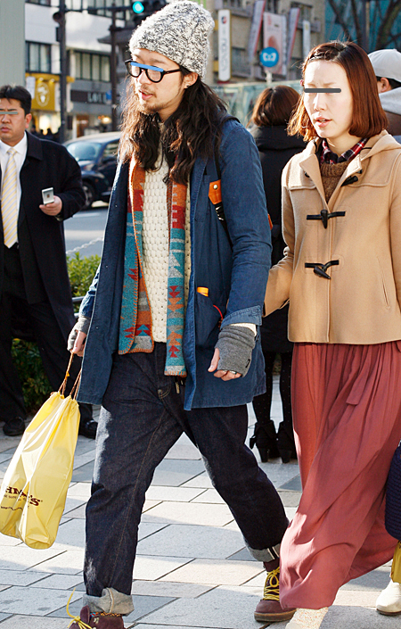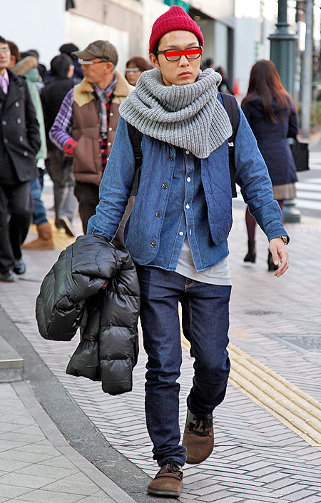 メガネとセットのニット帽スタイルの男子は新宿でも目立った。ス...