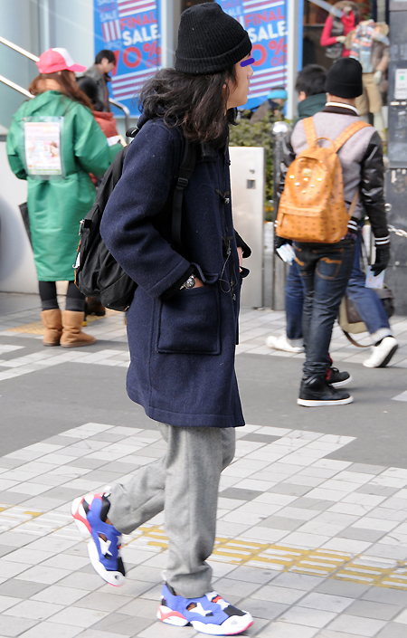 定番となったダッフルコートには、リュックとニット帽、ポンプフ...