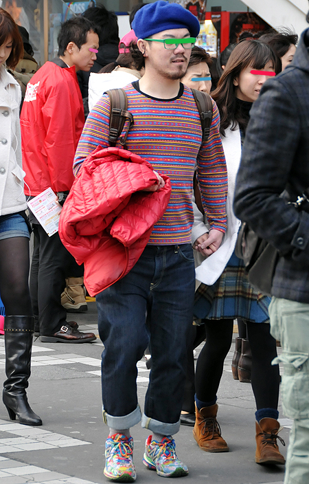 白、黒、ベージュといった無彩色や肌色から茶系のヌーディカラーに近い色以外のアイテムを着用している人すべて。アイテムは問わず、インナーや小物でちらりと見える部分がわずかでも可。
