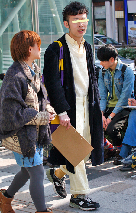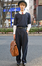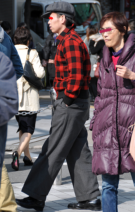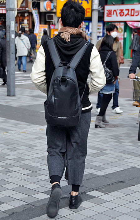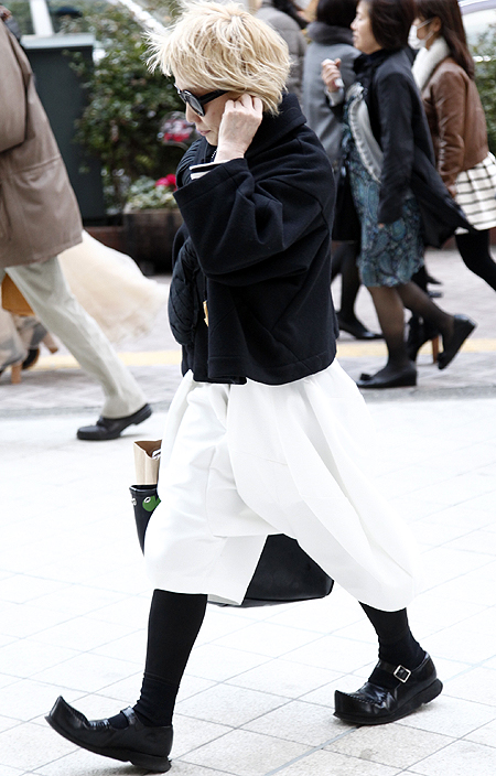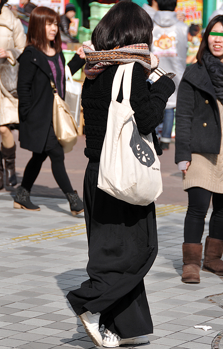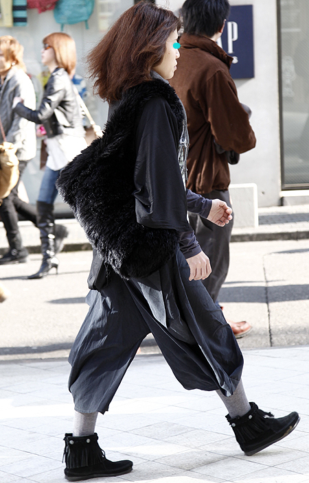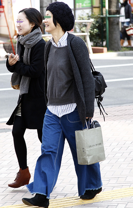 まるで80年代のカラス族のようなワイドパンツの着こなし。20...