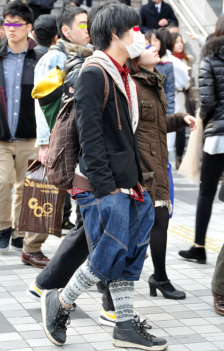 袴のような超ビッグパンツは、トーキョーモード系に人気。前を開...