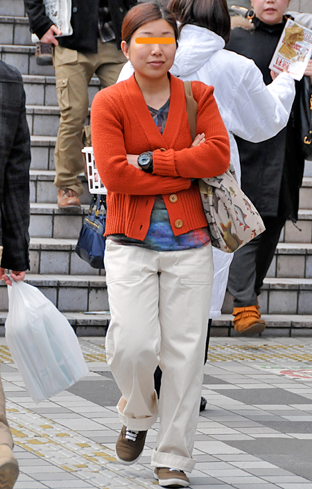 コットンチノのゆるパンツをロールアップしてかわいく見せたスタ...