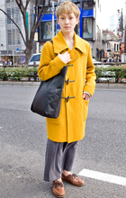 デニムのバギーにロングコートで全体的にゆるカジが90sっぽい...