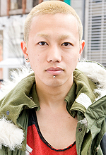 パーカーと同じ感覚で、モッズコートをライダースの下に重ね着しました。柄物は好きです。金髪は半年前からです。以前はUNIQLO(ユニクロ)で働いていましたが、UNIQLO(ユニクロ)は金髪がNGだったので、その反動で染めました。