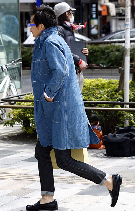 メンズにはコートなどロング丈のデニムアウターも見られた。今春...