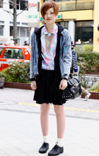 原宿のヤング層にはメンズサイズのGジャンやシャツをミニ丈ボト...