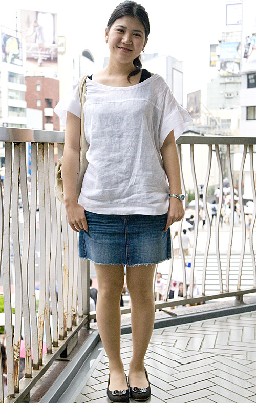 いちばん上に着用したトップスのアイテムの色が白またはオフホワイトのものすべて。柄が入っているものは除く。素材や襟の有無、丈などは問わない。