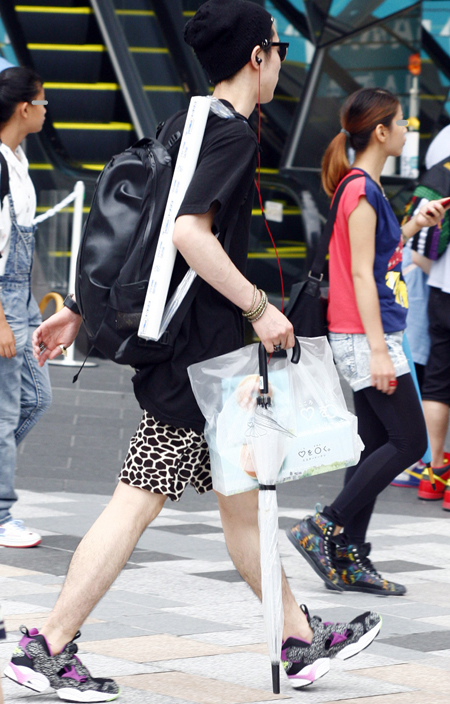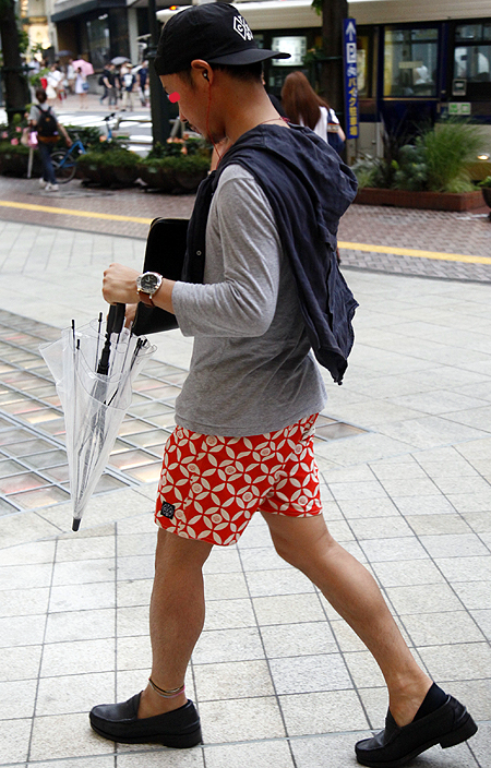 ヒョウ柄ならぬキリン柄?のショーツ。ストリートモード系の男の...