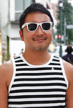 サングラスはフレームが白いところが気に入りました。パリスヒルトンが昔かけていたもので、7年前から1年中かけています。車を運転することが多いので冬もつけてます。サングラスは全部で10個くらい持っていて、お気に入りは3個くらい。Ray Ban(レイバン)のティアドロップも持っています。次に欲しいのは伊達メガネです。さま〜ずの大竹みたいに知的なイメージもだせるしスーツにも合わせられるので。