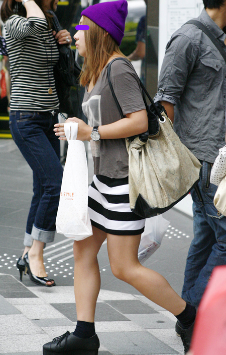 お揃いのフューシャピンクがストリートで目立っていた韓国人のカ...