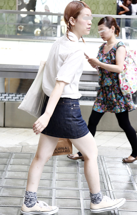 タイトスカートは取り入れやすさからかデニムが目立った。ベルト...