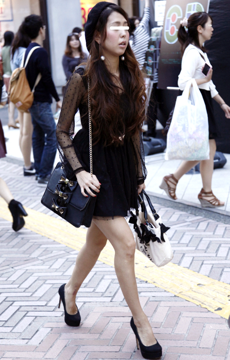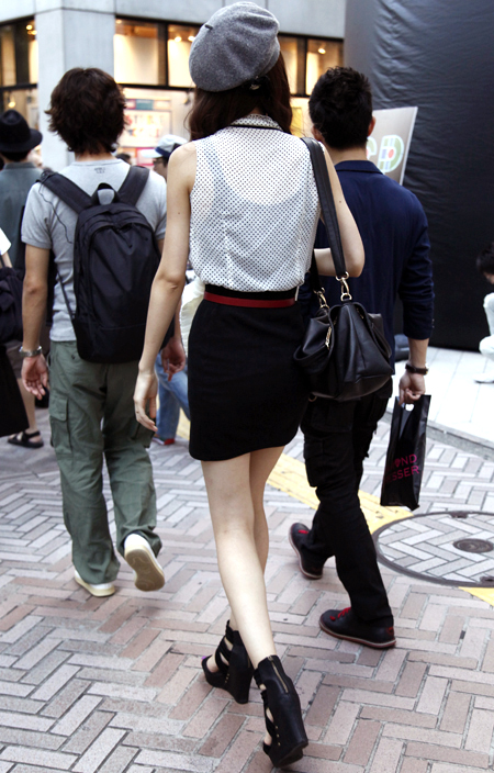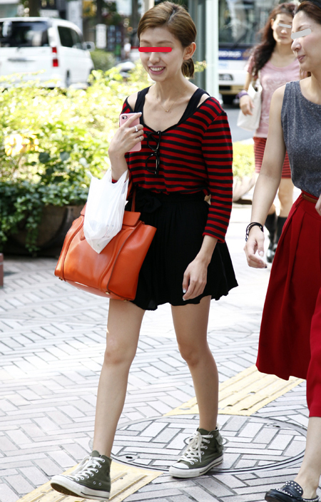 丈がヒザ上のスカートまたはパンツなどを着用する女性すべて。素材や質感は問わない。ワンピースやオールインワンも含む。