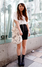 うち、黒ミニ丈ボトムス