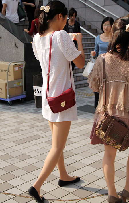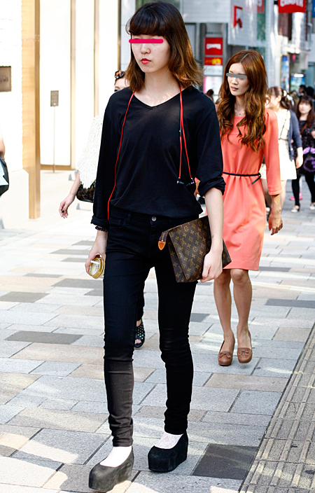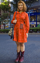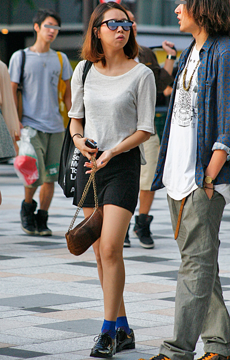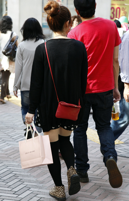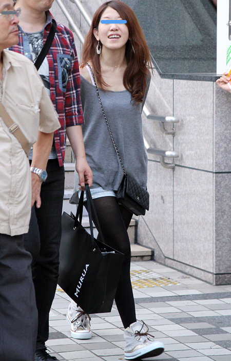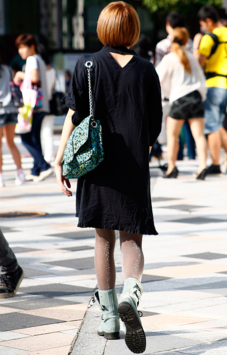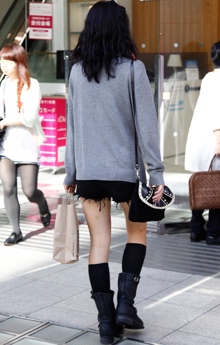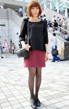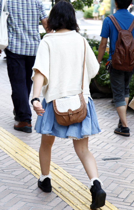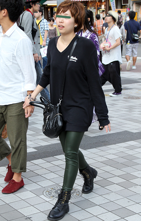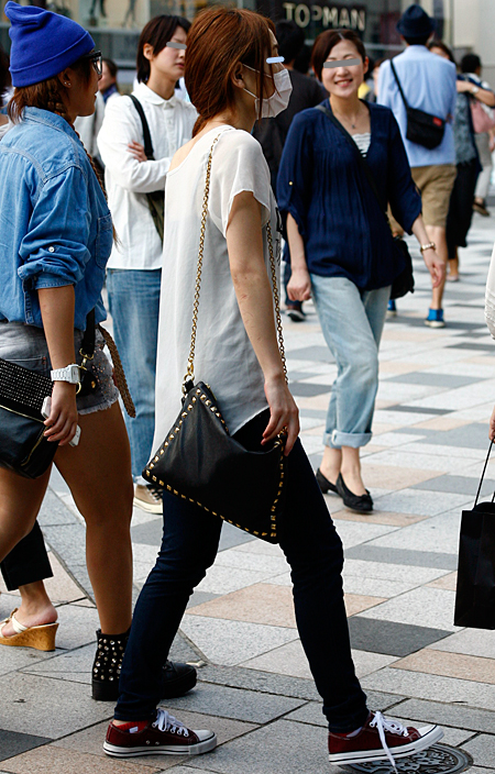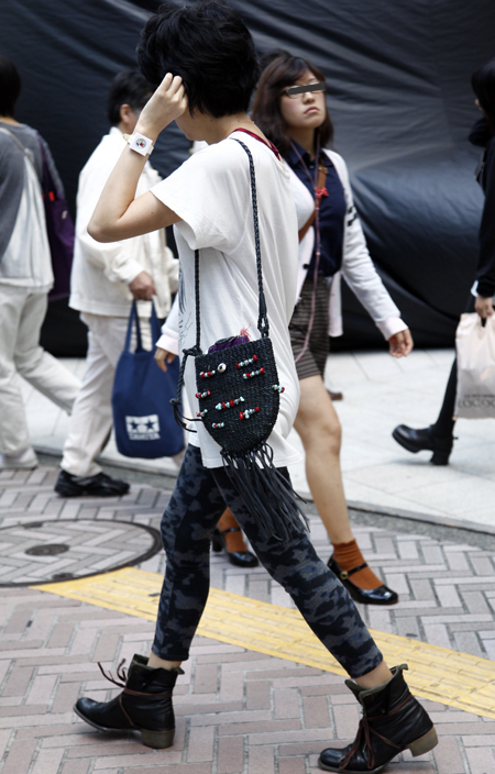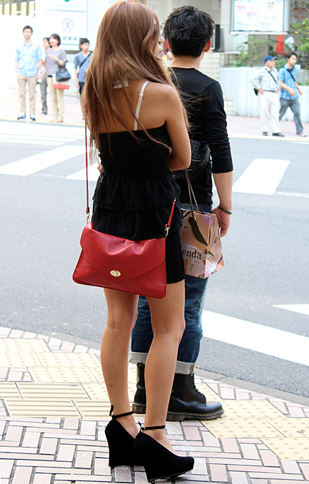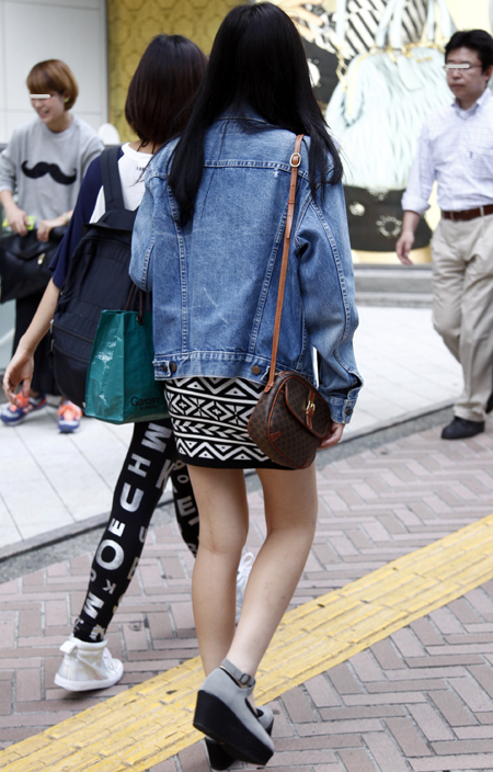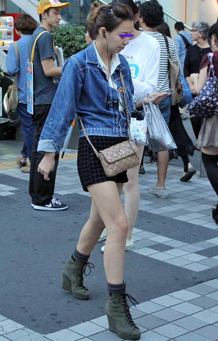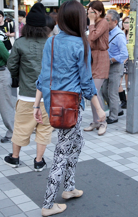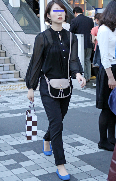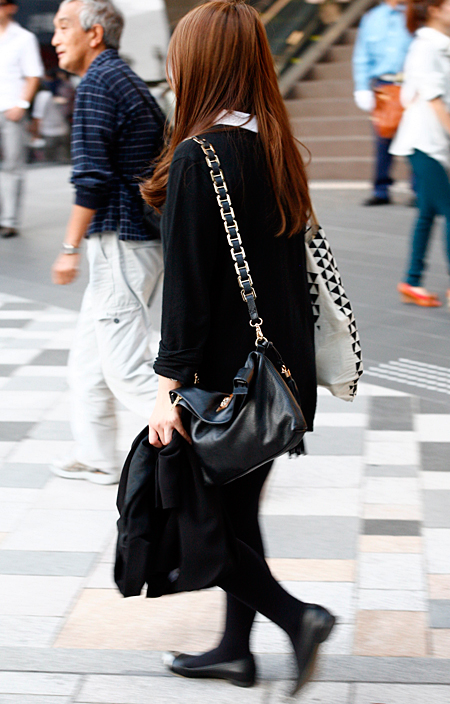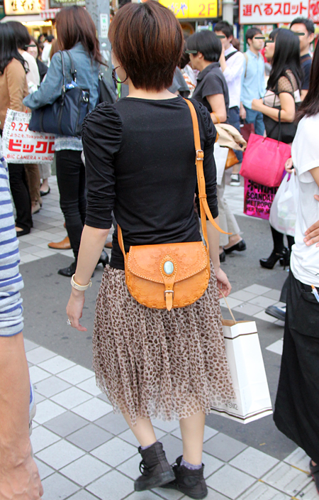 原宿では黒のレザーバッグが多かった。パワーショルダーのシャツ...