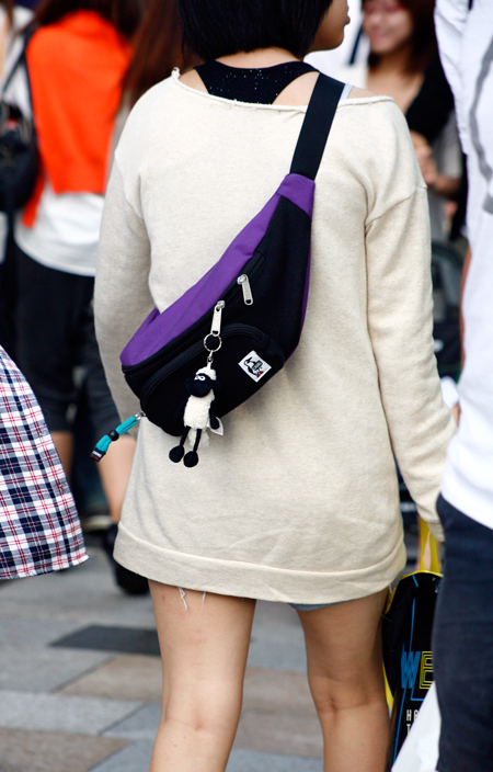 女性にもウエストポーチが浮上中。ペンギンのマークがかわいいア...
